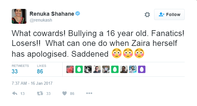 Renuka Shahane calls everyone coward who trolled poor Zaira.