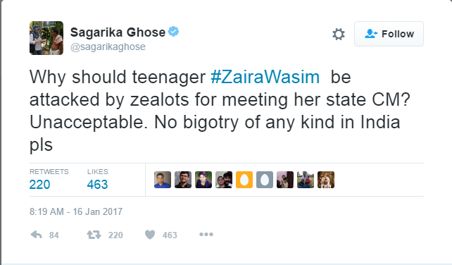 Sagarika Ghose says that whatever happened to Zaira is unacceptable.