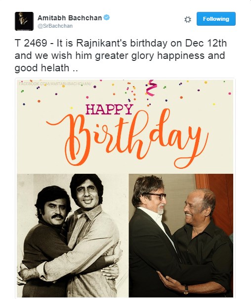 Amitabh Bachchan's birthday wish to Rajinikanth
