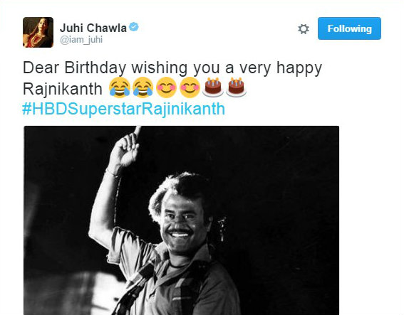 Juhi Chawla's birthday wish to Rajinikanth