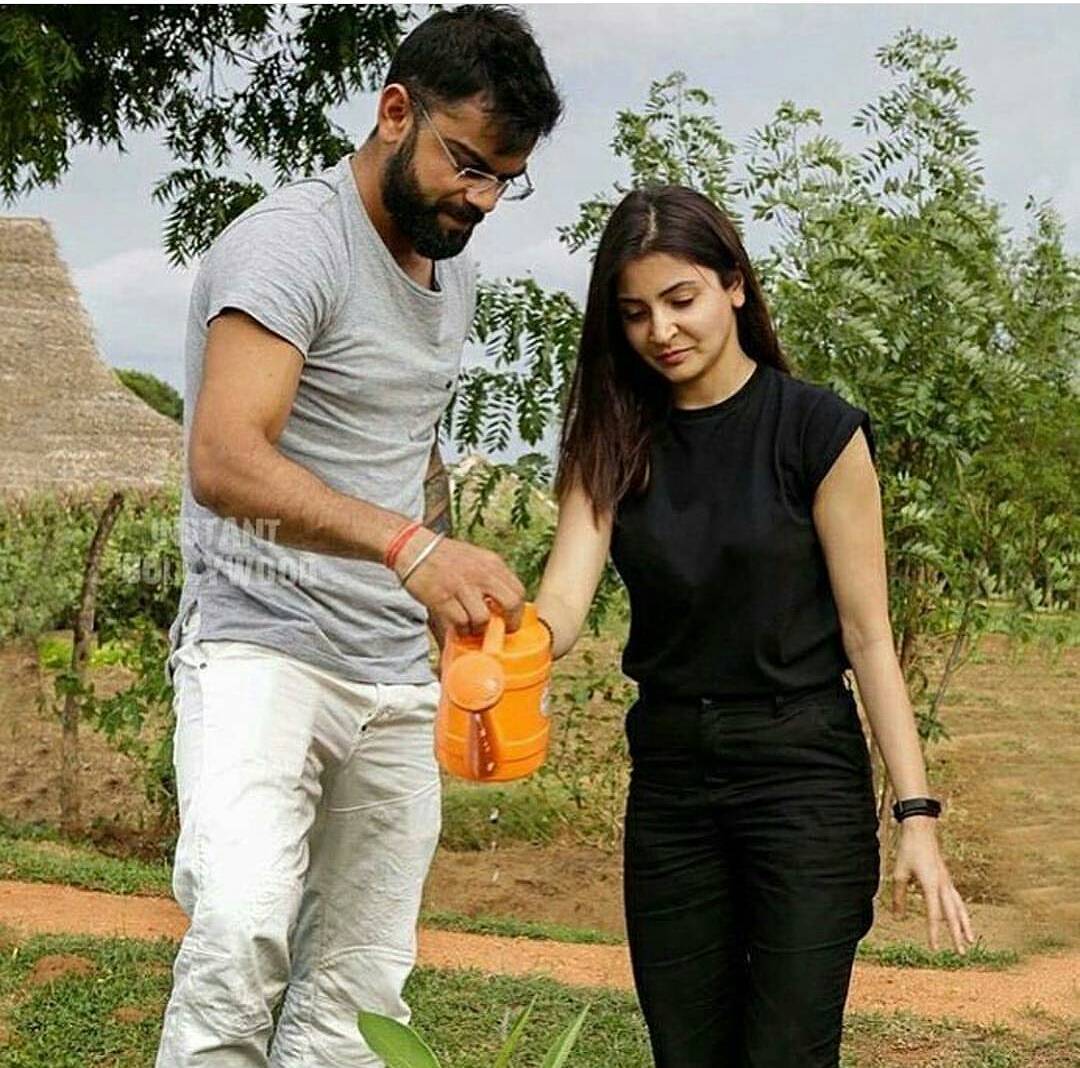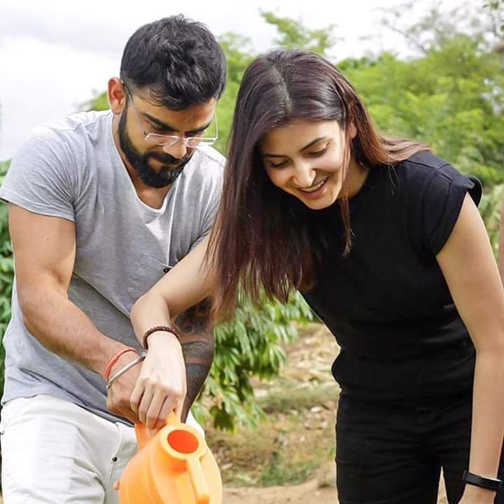 Lovebirds Anushka Sharma and Virat Kohli plant a sapling together.