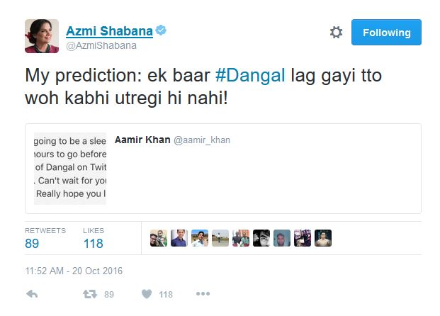 The trailer of Aamir Khan-starrer ‘Dangal’ was launched this morning, and it is being loved by everyone. While celebs like Karan Johar and Shabana Azmi have already seen the film, other Bollywood celebs cannot stop praising the trailer of the film.
