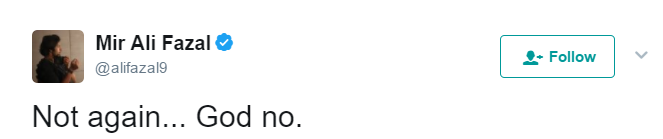 Ali Fazal expressed grief over London attacks on Twitter.