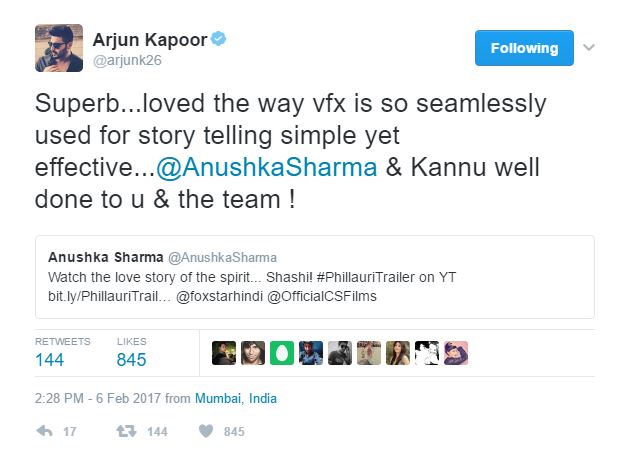 Arjun Kapoor says 'Phillauri' trailer is superb.