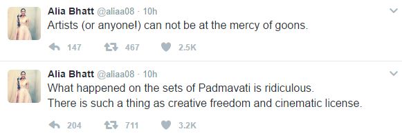 Alia Bhatt feels what happened on the sets of 'Padmavati' was ridiculous.
