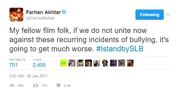 Kabir Khan too took to Twitter to support SLB.