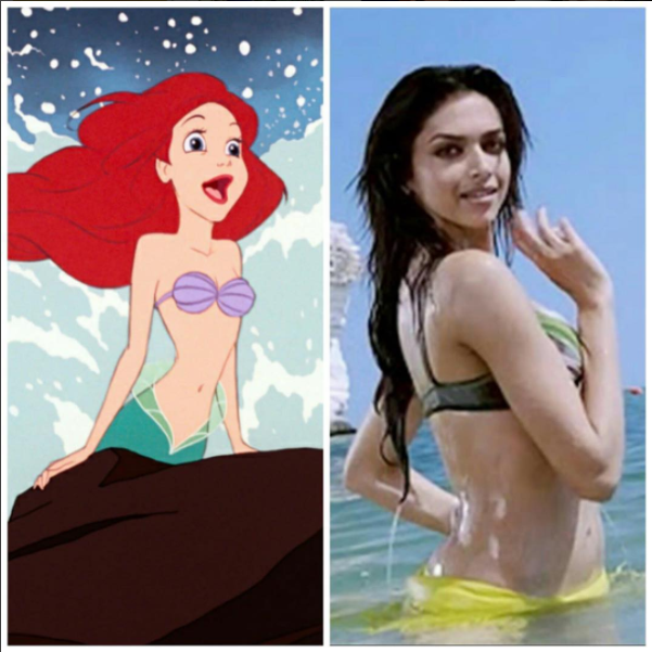 Deepika Padukone's picture in a bikini suit enjoying herself in water has been compared to that of princess Ariel, the only non-human princess from the list of Disney Princesses.