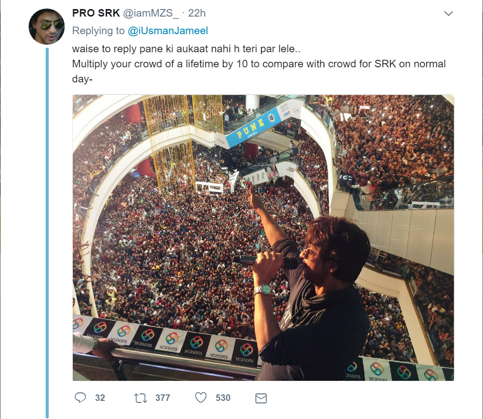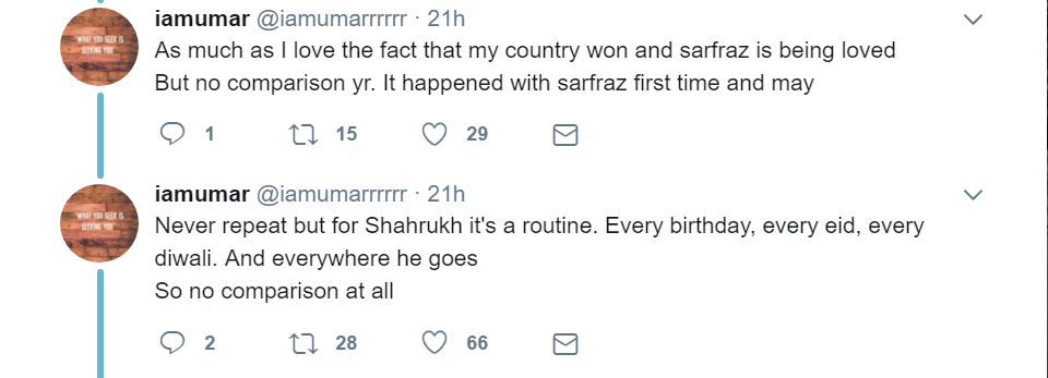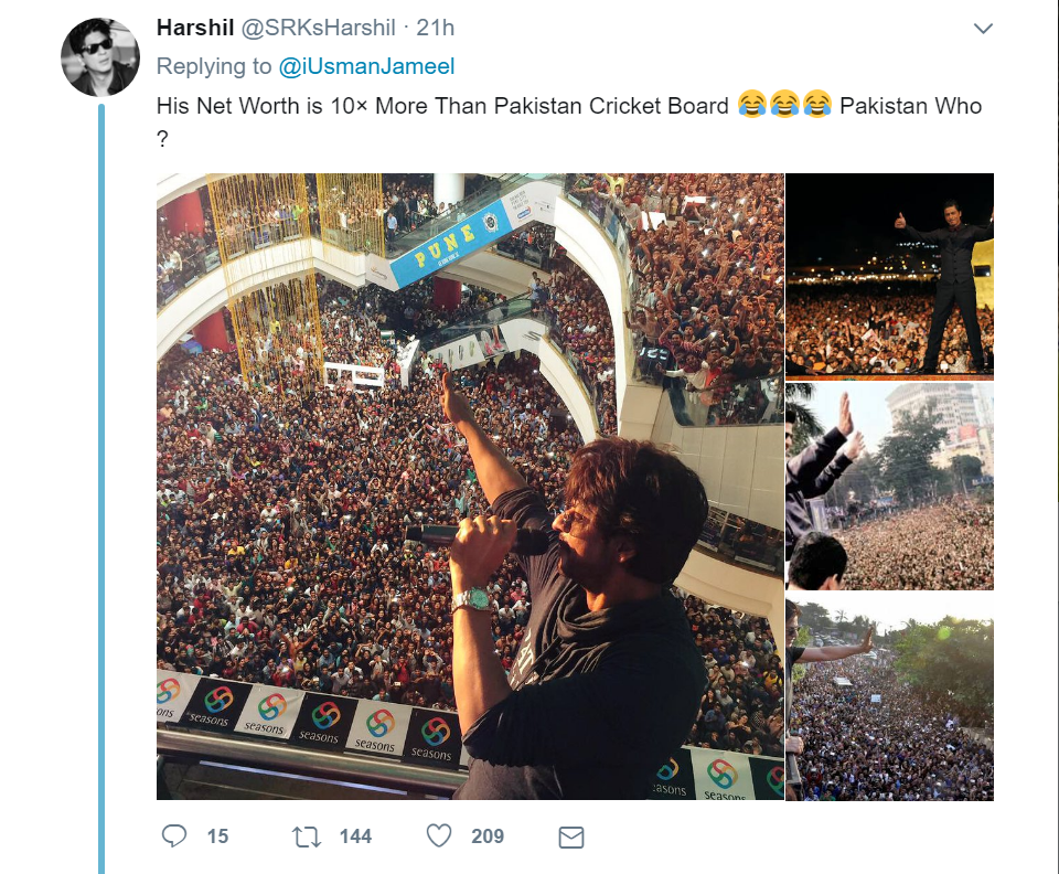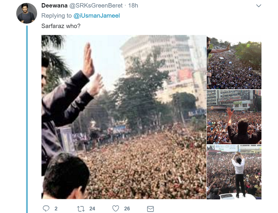 Shah Rukh Khan certainly enjoys massive fan following that is unmatchable. You better beware of the millions of die-hard fans of the Badshah who would not take a single word against him. That’s what has happened recently with a Pakistani Twitterati who took an unwanted dig at SRK while celebrating Pakistan’s victory in Champions Trophy. Pakistan defeated India in the field of cricket and won the ultimate Champions Trophy this year. So this man tweeted a picture of Pakistani team’s captain getting a grand welcome in the country and captioned it as “SRK who?” In no time, SRK lovers started bashing him for his tweet. Ironically, SRK lovers from both the countries and not just India bashed this man for his comments.