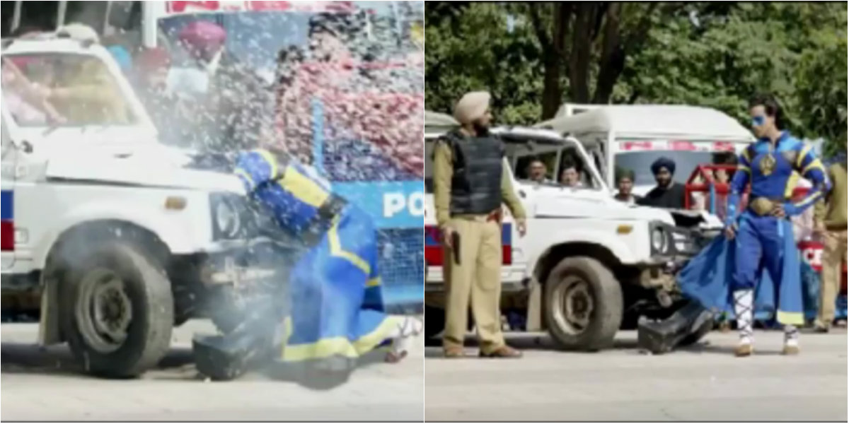 Tiger Shroff's iconic superhero pose may have got all the limelight in the scene, but we cannot miss the black car in the background that seems to be alright before and suddenly with 3 mysterious lights in the next shot.
