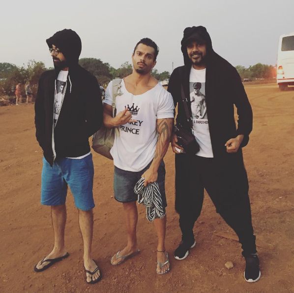 Karan Singh Grover and his friends flaunt their tees which have Karan's faces on them