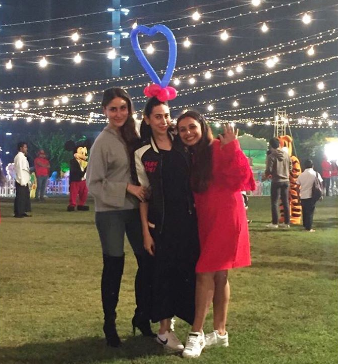 Kareena Kapoor Khan and Karisma Kapoor pose with Rani Mukerji for a picture.