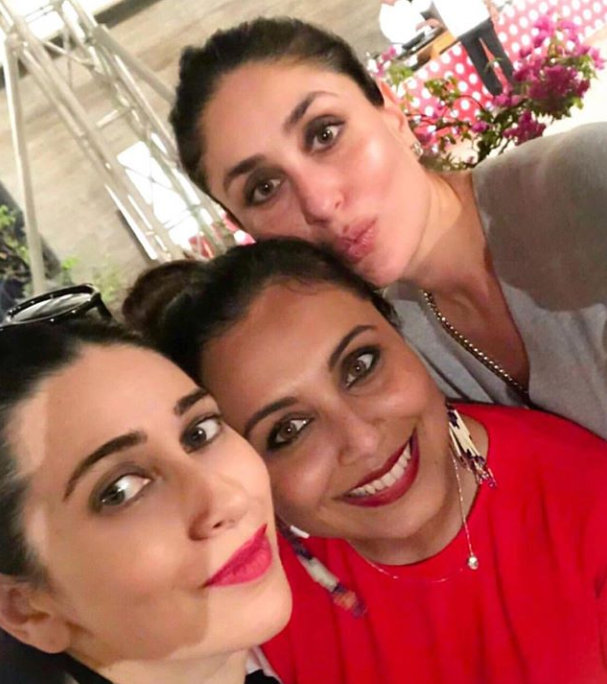 The Kapoor sisters, Karisma and Kareena pose for a selfie with Rani Mukerji.