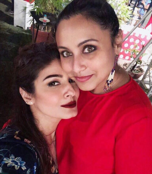 Rani Mukerji poses for a selfie picture with Raveena Tandon.