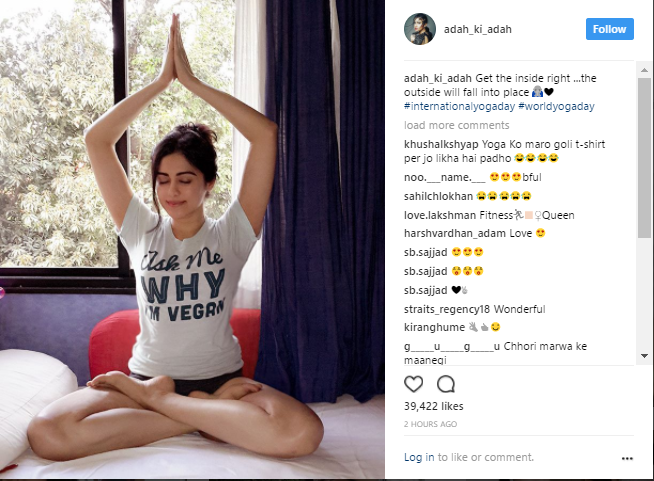 "Get the inside right ...the outside will fall into place", shared Adah Sharma on International Yoga Day.