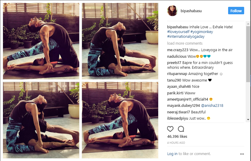 Bipasha Basu and Karan Singh Grover shared a collage of them performing, with a message that stated, "Inhale Love ... Exhale Hate!"