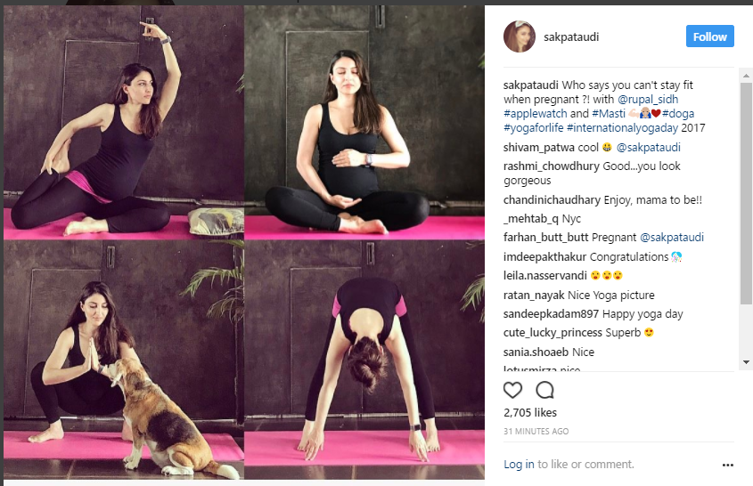 "Who says you can't stay fit when pregnant ?," is what soon-to-be-mommy, Soha Ali Khan, shared on International Yoga Day.