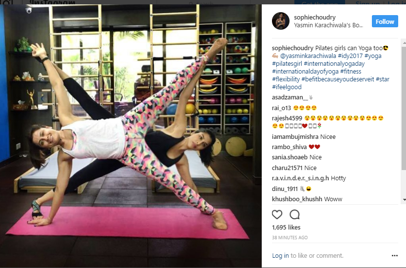 Sophie Choudry stated, "Pilates girls can Yoga too??? @yasminkarachiwala."