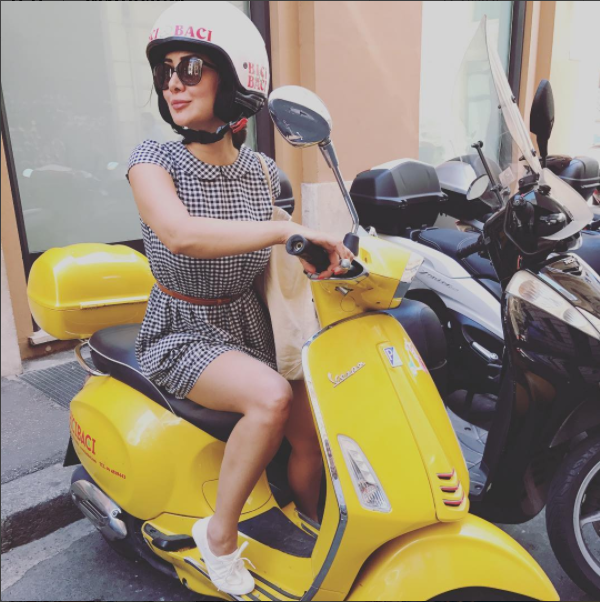 Kim is all set for her Roman holiday as she poses on a scooty!
