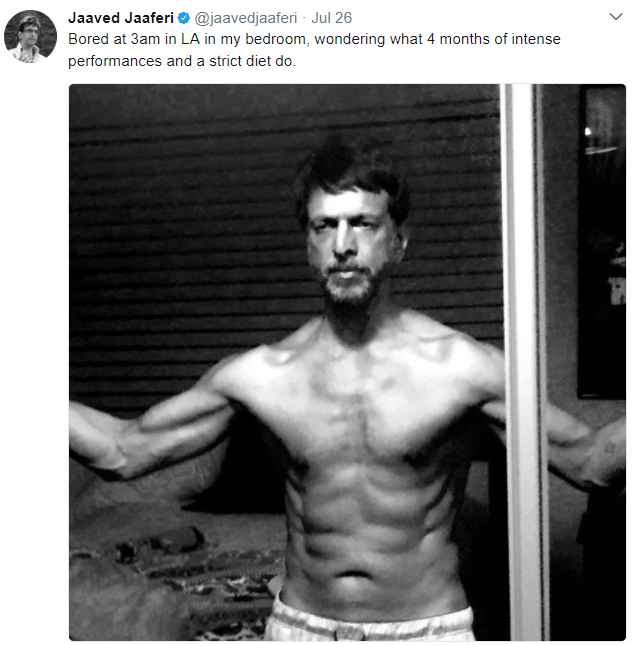 The era of 90s was majorly constituted by some amazing series like ‘Boogie Woogie’ and ‘Takeshi’s Castle’. The voice and face behind these shows, Jaaved Jaaferi, made our childhood awesome. Though he is not seen in the current movie circuit, he has been a part of various movies like ‘Double Dhamaal’, ‘3 Idiots’, ‘Bang Bang’, ‘Salaam Namaste’, to name a few. Now, he is back in the limelight and how! Well, the actor is here to give the young buds a tough fight with his fabulous physical transformation which will leave you spellbound. At 53, the actor is showing off his 8-pack abs and he is droolworthy in his hunky avatar. (Also Read: Did you know? Jaaved Jaaferi did the body double for Sanjay Dutt in an iconic dance song)