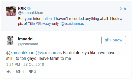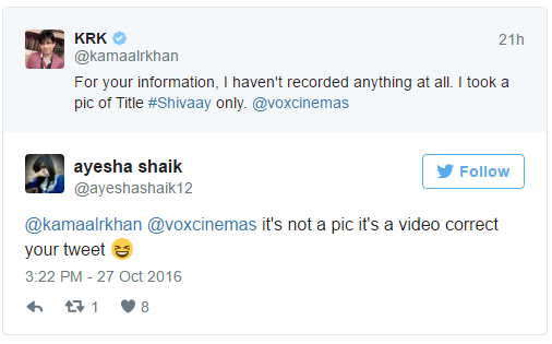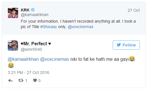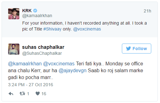Since yesterday morning, Ajay Devgn’s ‘Shivaay‘ that released today is facing the brunt of messing with the self-proclaimed critic Kamaal R Khan. It’s a known fact that in spite of several warnings KRK is never going to stop his disgusting remarks on Twitter. That’s exactly what he did yesterday, as he revealed the first scene of ‘Shivaay’ and also let in a few secrets about the movie on his Twitter page. Of course, this did not go down well with the makers of the movie and the film fraternity who found this act shameful and unlawful. In fact, many people on Twitter also mocked the man endlessly.