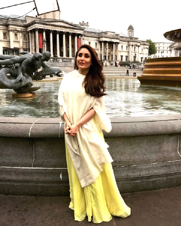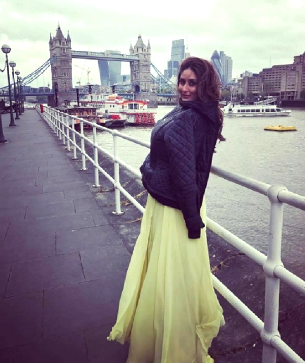 Actress Kareena Kapoor Khan is a style diva and her fashionable public appearances are indeed eye-catching. The actress has flown down to London to shoot for a special commercial and her pictures are totally mesmerising. She has been roaming the streets of Britain’s capital in a summery outfit and she looks fresh as a daisy. She is seen wearing a beautiful, lemon yellow outfit and the picturesque background is like the icing on the cake. (Also Read: Kareena Kapoor Khan to NOT have a cameo in Saif Ali Khan-starrer ‘Chef’)
