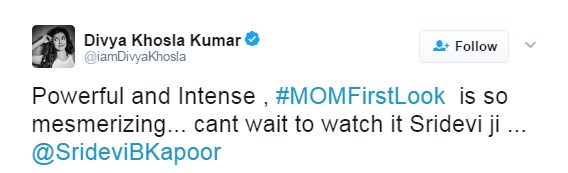 Divya Khosla Kumar praises the first look of Sridevi’s film ‘Mom’.