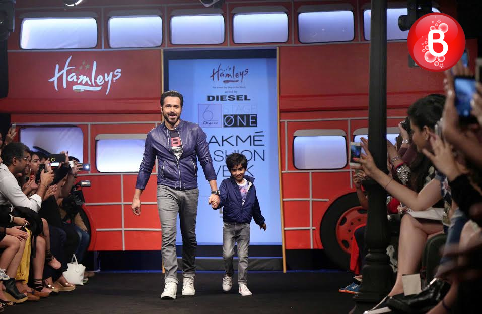 Actor Emraan Hashmi took to the ramp on Day 5 with little son Ayaan for Diesel and Hamleys and it was indeed a sight to behold as the father and son enthralled the audience with their co-ordinated outfits. The father-son duo were seen donning striking printed T-Shirts along with leather jackets and grey stone bleached denims. The show was specially for the kids as the latest Diesel Kids Collection was unveiled in India for the first time.