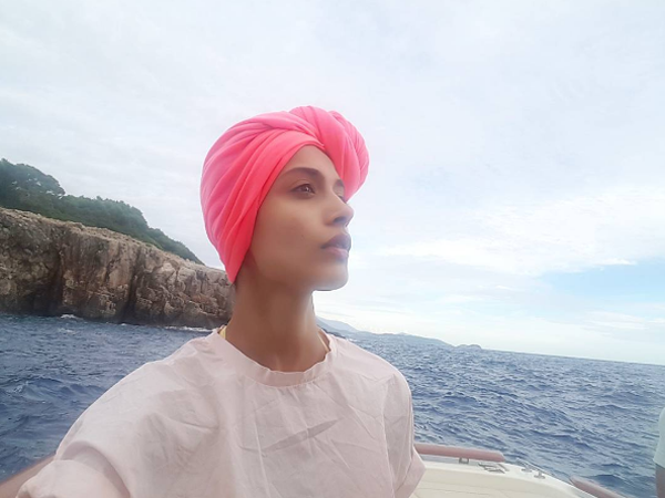 Headgear or what? Look out Sarah's fun caption on the picture: badu by the ocean... #erykahbadu #headgear #tieitup #hairdo #sea #blue #yatch #croatia #crostagram