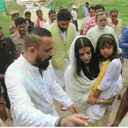 Aishwarya Rai immerses her father's ashes at the Sangam Ghat.