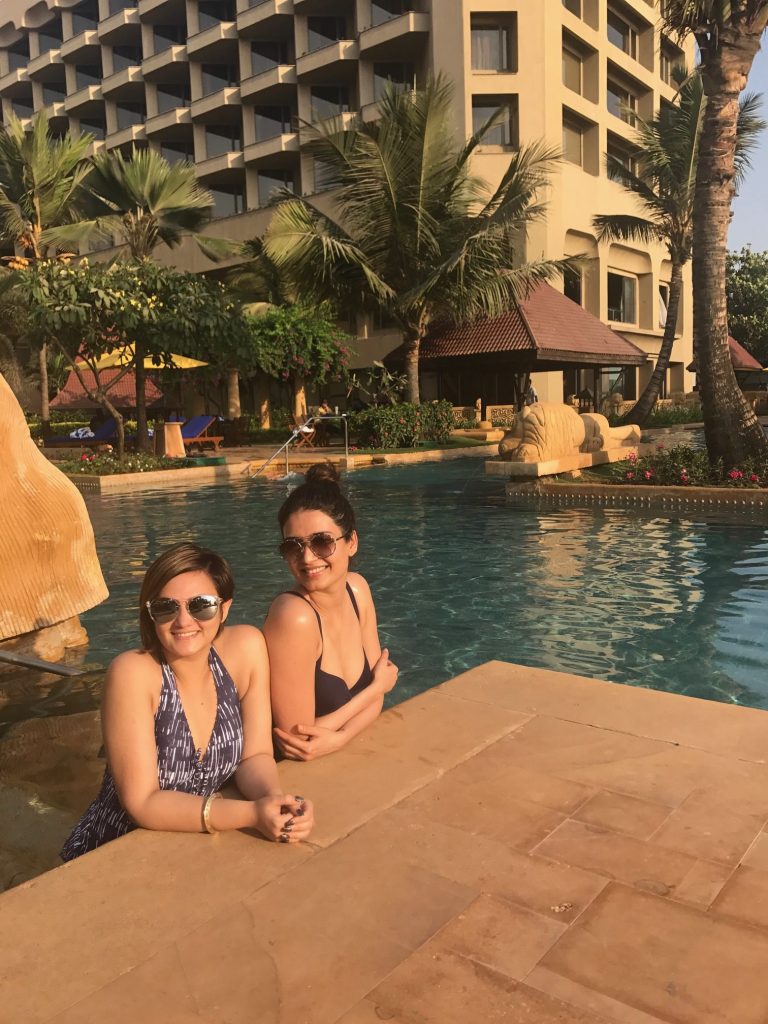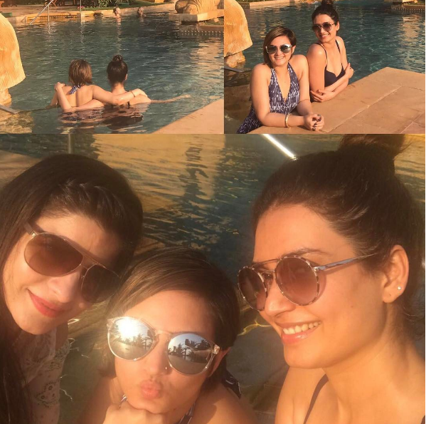 Karishma Tanna, Shweta Rohira and Tabeer get clicked by the poolside.