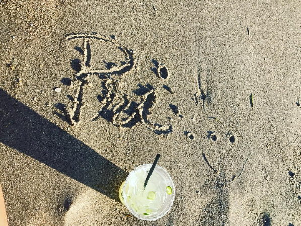 PeeCee has engraved her name on the soft sand. She truly is having the time of her life.