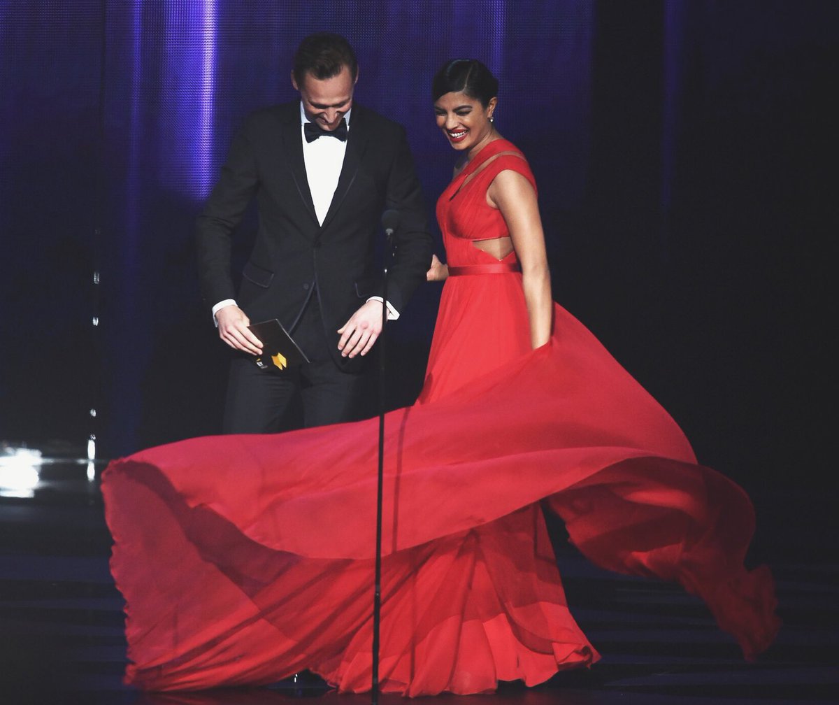 For Emmy Awards 2016, Priyanka stepped on stage to present the award for the Best directing for a limited series, movie or special to Susanne Bier for ‘The Night Manager’. Accompanying her was the very handsome Tom Hiddleston, who plays Asgardian demigod Loki in the the ‘Thor’ and the ‘Avenger’ series. The duo rocked the stage with their combined enigma and the below images are a definite proof of that.