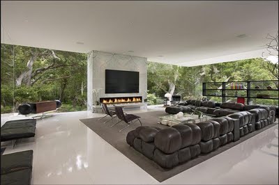The living is so big and we totally love that sofa.