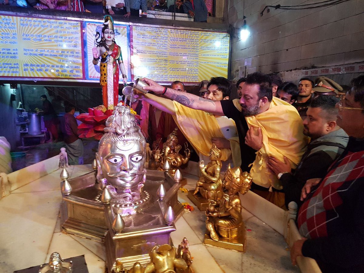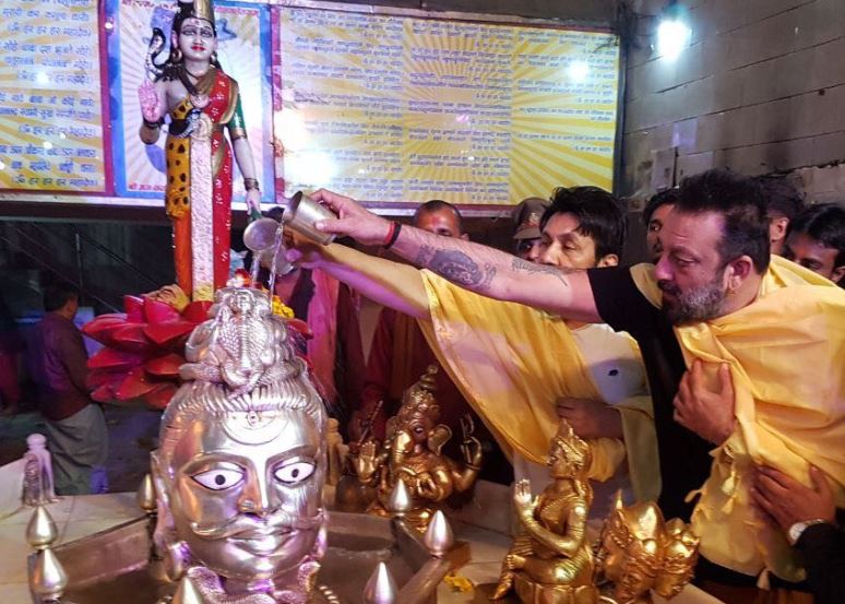 Sanjay Dutt and Shekhar Suman seek the blessings of Lord Shiva at a temple in Agra.