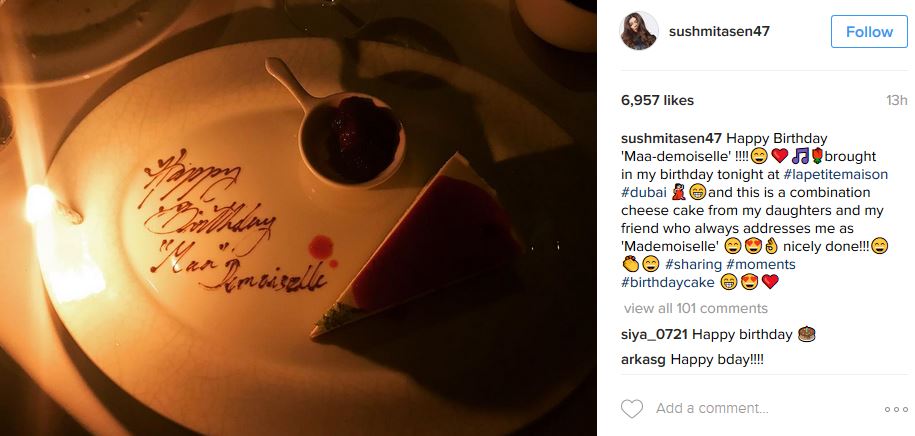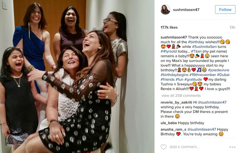 Sushmita Sen celebrates her 41st birthday today. The actress is in Dubai to celebrate her birthday with her daughters and close friends. Sushmita is one of the most active celebs on social media. The ‘Main Hoon Na’ actress, on her Instagram account, posted a few pictures from her birthday celebration.