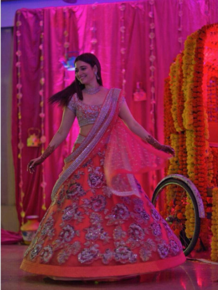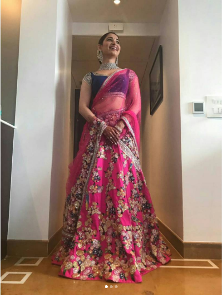 She wrote, "Mehendi functions= Fun times+ lots of laughter. Wearing @HouseOfNeetaLulla @Gehnajewellers1"