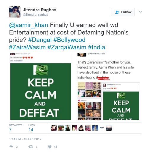 In 2014, Zaira’s mother had posted a pro Pakistan tweet during an Indian-Pakistan match which has gone viral now, and due to which the actress is suffering. Though reportedly her mother’s Facebook profile has been deleted, the screenshot of the post is doing the rounds of social media. (Also Read: ‘Dangal’ actress Zaira Wasim gives a fitting reply to a BJP minister)