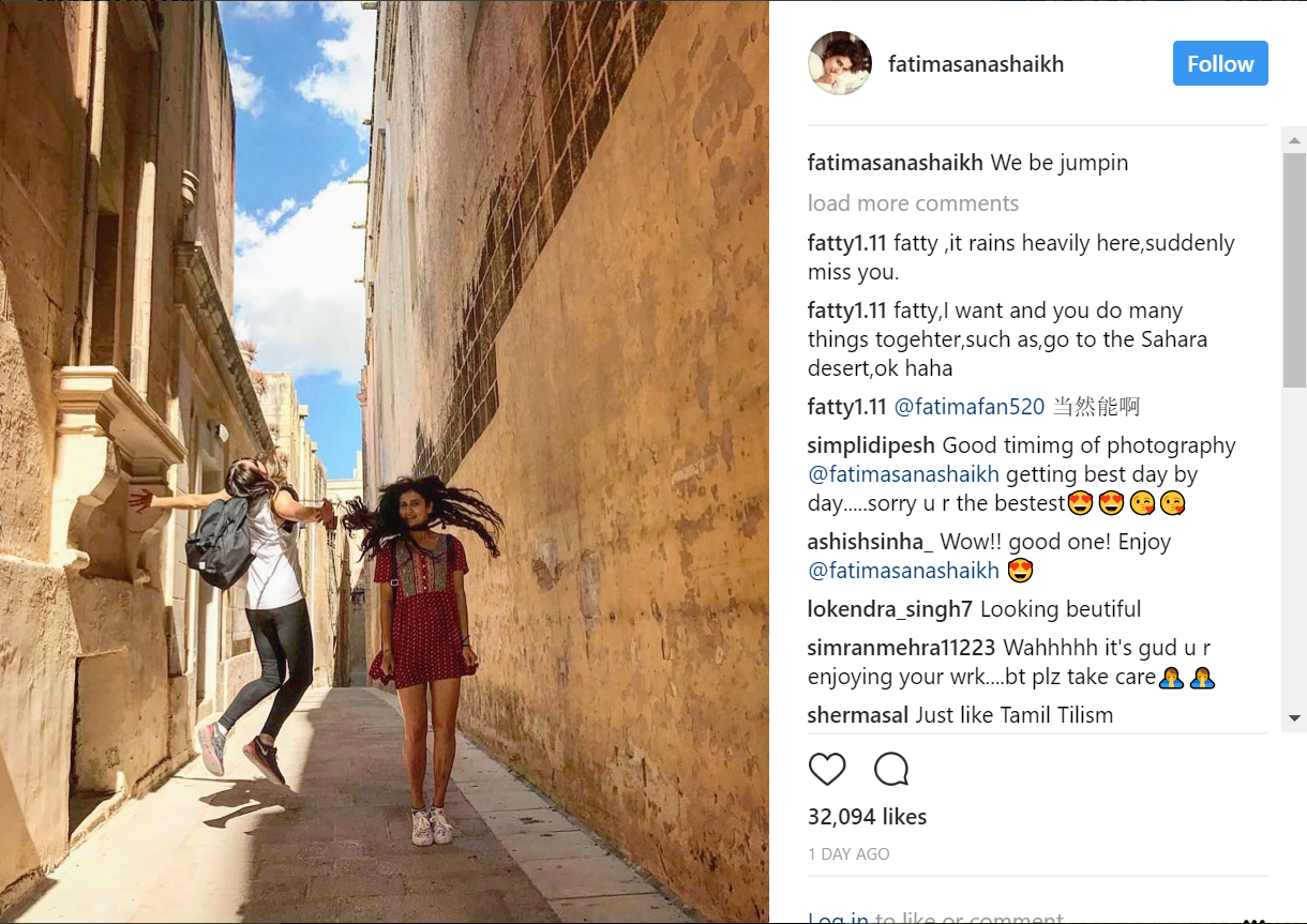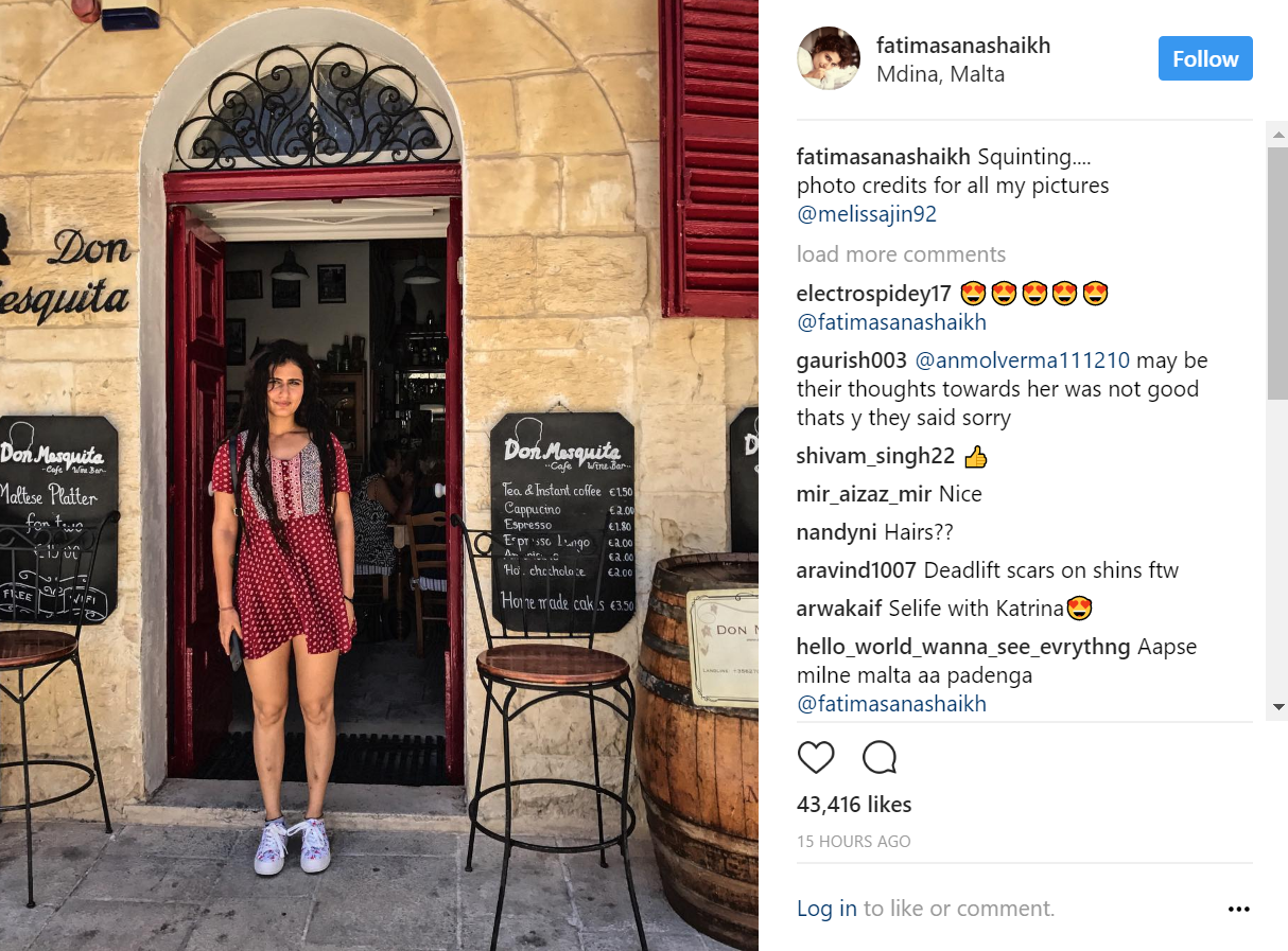 Fatima Sana Shaikh enjoying herself in Malta while shooting for 'Thugs Of Hindostan'.