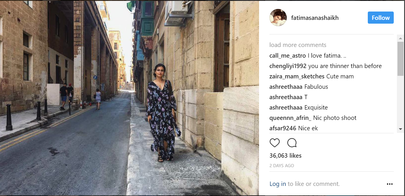 Fatima Sana Shaikh shone bright in her debut film ‘Dangal’ as Geeta Phogat and despite sharing the screen space with Aamir Khan, it was Fatima who was praised. Luckily, she has bagged her second film too and once again, she has an Aamir Khan film in her kitty. Fatima will next be seen in ‘Thugs Of Hindostan’ for which she has already started shooting in Malta. The beautiful lady uploaded a few pictures of herself from Malta and we are in complete awe of her new look. Unlike her pixie cut in ‘Dangal’, Fatima will be seen sporting long, lustrous tresses in ‘Thugs Of Hindostan’.