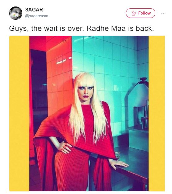 Someone feels that Priyanka Chopra looks liek Radhe Maa.