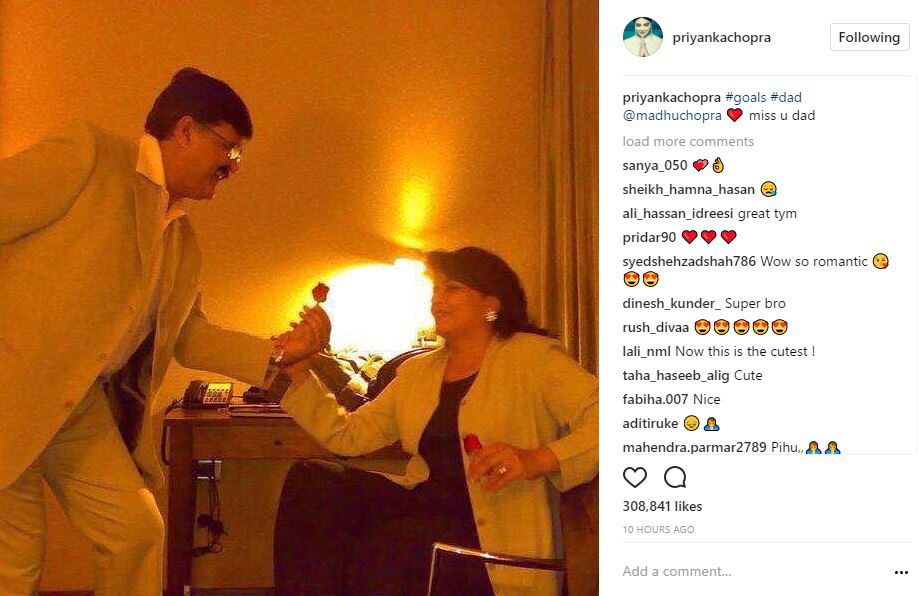 The actress captioned this picture as, "#goals #dad @madhuchopra ❤️ miss u dad."