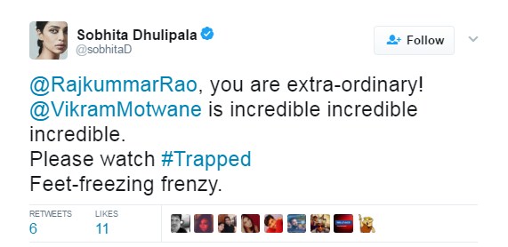 Looking forward to the release of this film eagerly, here we bring to you the favourable response of our B-Town stars. ‘Trapped’ is slated to release this coming Friday on March 17, 2017. (Also Read: Raj Kummar Rao: I want to get ‘trapped’ with Aamir Khan)