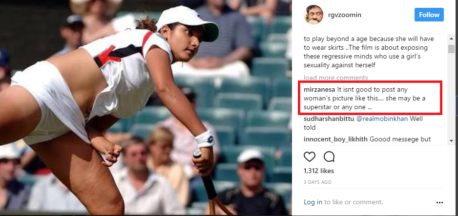 Ram Gopal Varma never fails to make it to the headlines. Often he is in the news because of controversial statements or messages that he shares on social and once again, he has grabbed the attention by posting a not so good image of tennis player Sania Mirza. Though his message was for all good, but the social media users were not quite happy with the picture that he has shared with his post. Sania’s inners are visible in the image and hence, people are outraged over RGV’s choice of post. (Also Read:Â Ram Gopal Varma regrets picking up on Tiger Shroff for no reason)