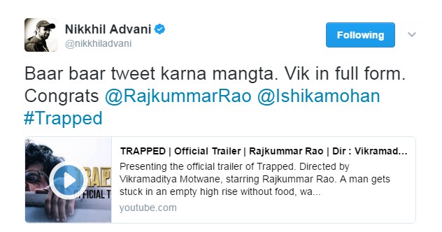Nikkhil Advani feels the trailer should be tweeted again and again.
