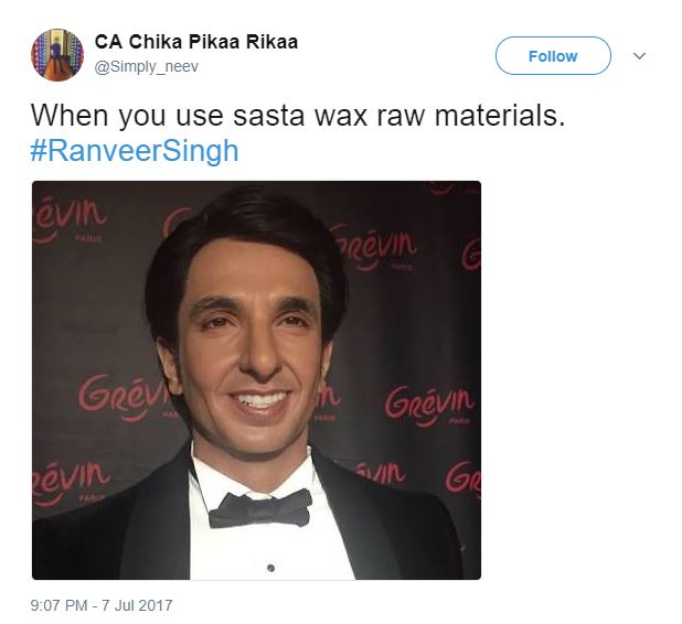 It’s surely a big deal when a celeb’s wax statue is made and installed at a wax museum. Well, at Grevin’s wax museum recently the wax statue of none other than Ranveer Singh was unveiled. It was his birthday when the wax statue was presented to the world. However, the actor is being trolled on the social media as the wax statue is looking anything but Ranveer! Well, the tweets are hilarious and you will have a hard time ROFL-ing. (Also Check: Fierce AF! Ranveer Singh drops a stylish bomb by dressing eccentric at the GQ event)