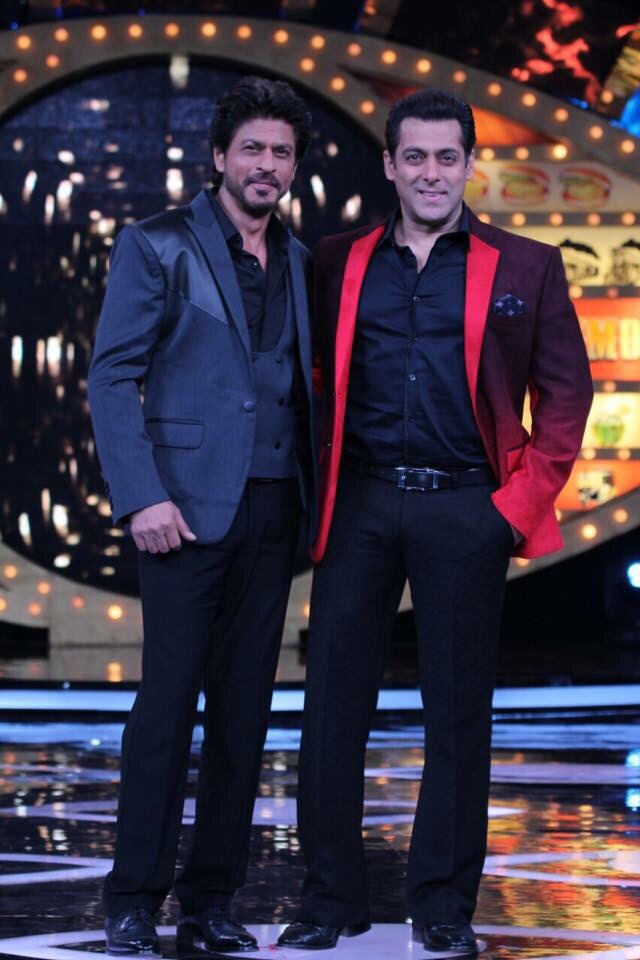 The weekend episode of ‘Bigg Boss 10’ is all set to bring together to the two Khans of Bollywood, Salman Khan and Shah Rukh Khan and the pictures of the same recently made it to the internet. The two Khans shot for The Weekend Ka Vaar episode, where Shah Rukh had come to promote his upcoming film, ‘Raees’. And we must say, they look so dashing. While Salman is dressed in a maroon blazer, Shah Rukh opted for a black 3-piece suit.