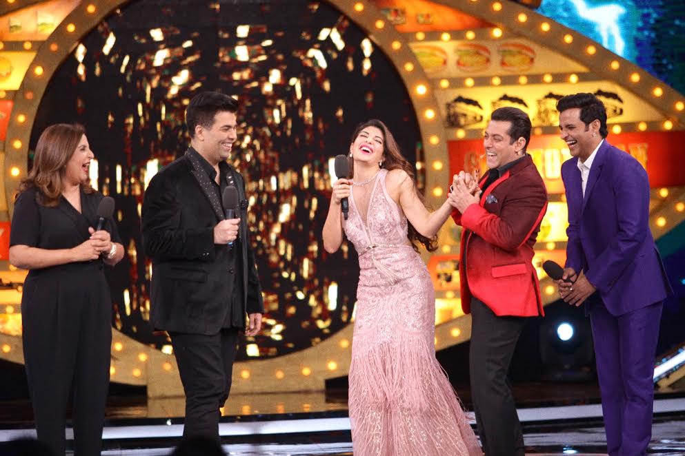 Shah Rukh Khan, Salman Khan, Karan Johar, Farah Khan and Jacqueline Fernandez together on the sets of 'Bigg Boss 10'.
