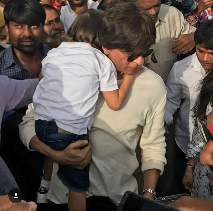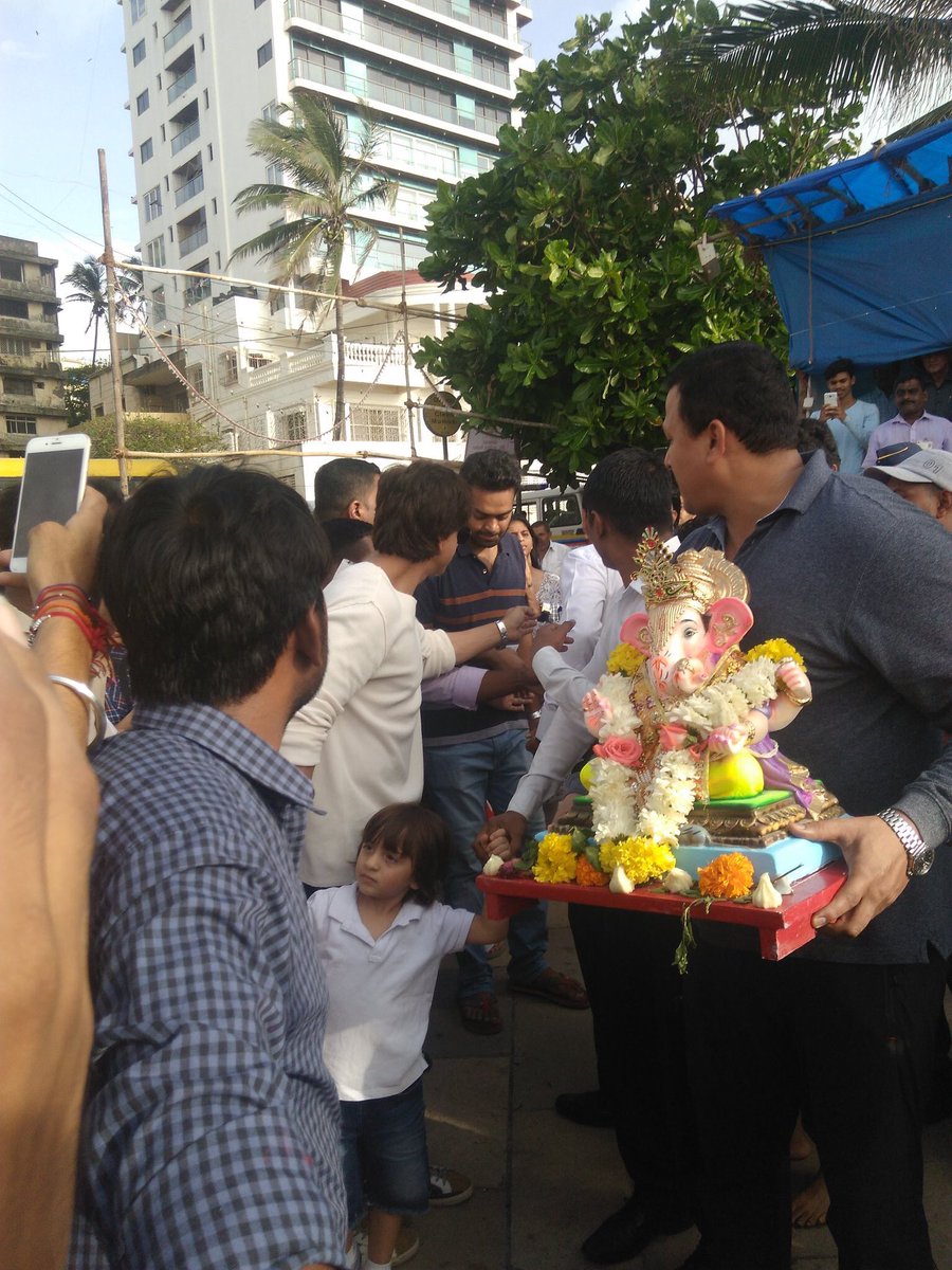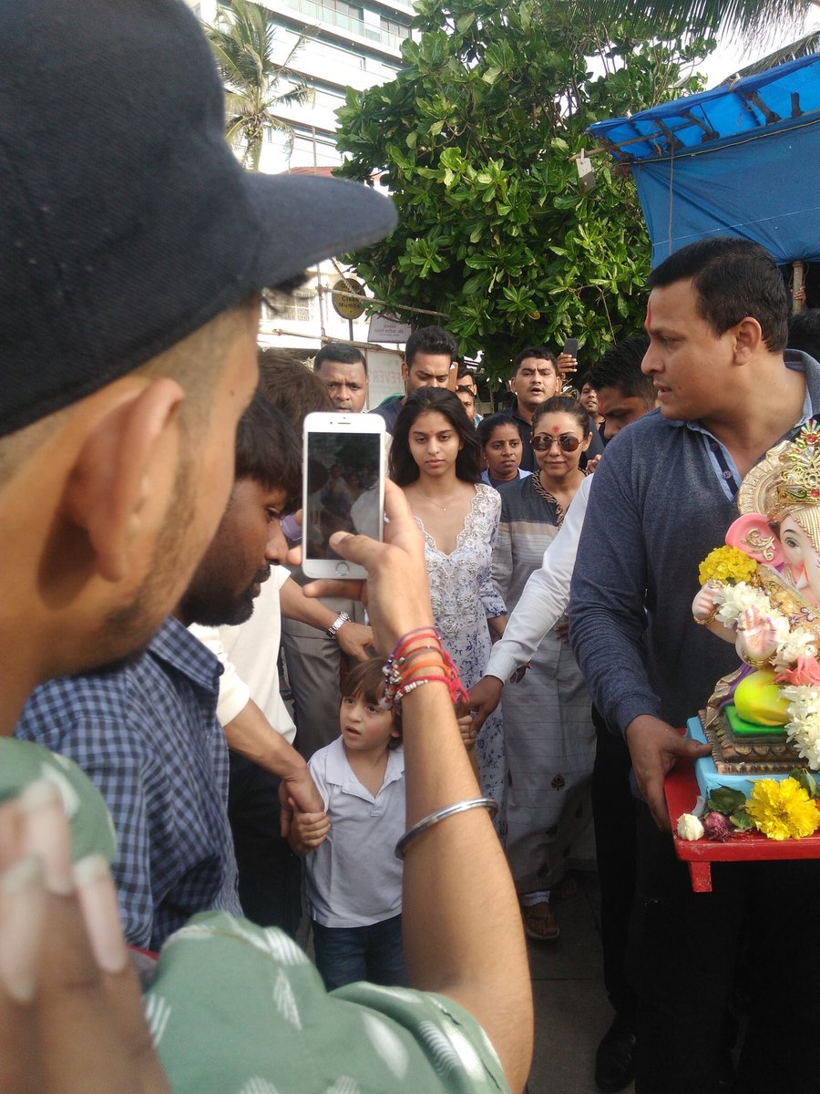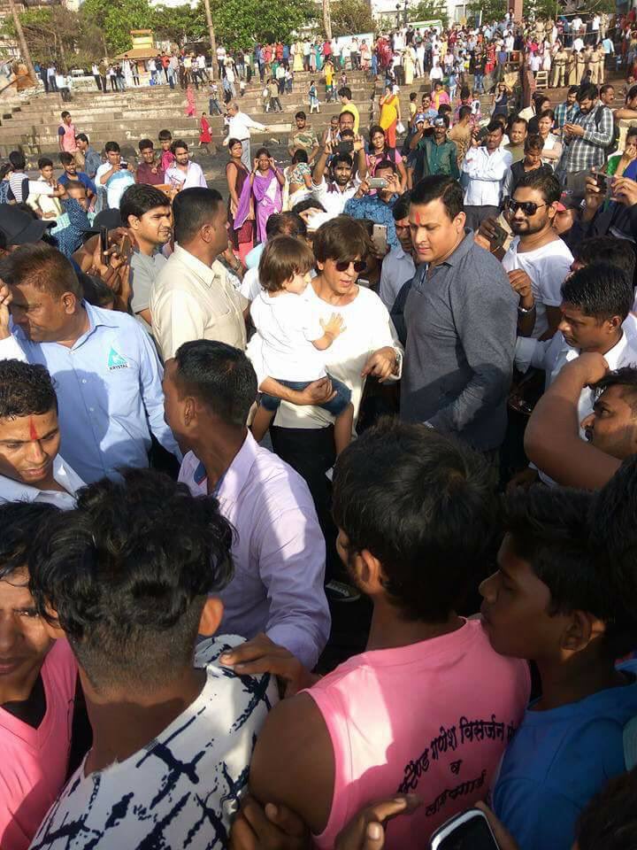 Shah Rukh Khan and his little family carried out the Ganpati visarjan yesterday. After celebrating the festival for seven days, SRK, his little son AbRam, wife Gauri Khan and daughter Suhana Khan participated in the visarjan ceremony. Twitter is filled with the pictures of the Khan family carrying out the rituals and offering prayers to Lord Ganesh. (Also Read: Shah Rukh Khan pays a special visit to Dilip Kumar, at latter’s house. VIEW PICS)