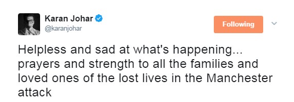Karan Johar mourns for Manchester Arena victims.