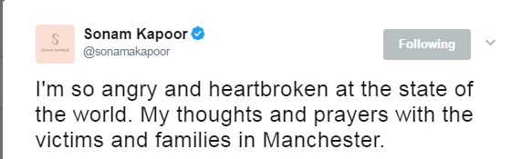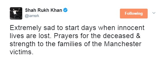 Shah Rukh Khan mourns for Manchester Arena victims.